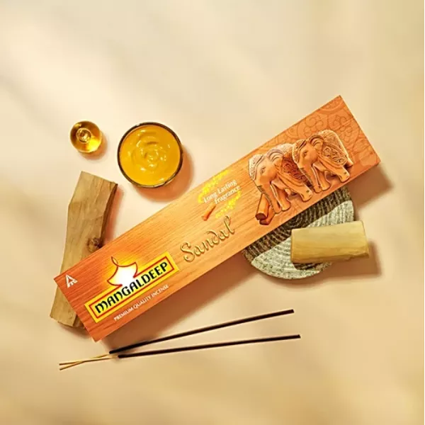 Product Code: 334 Catagory: Agarbatti & Dhoop Weight / Quantity: 14 Grams Trade Mark / Brand: Mangaldeep Material: Sandal Agarbatti Sticks Package Size: xx MM Country of Origin: India