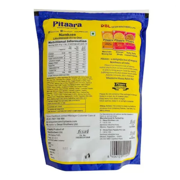 Product Code: 264 Catagory: Namkeen Weight / Quantity: 900 Grams Trade Mark / Brand: Pitaara Material: All in One Mixture Package Size: xx MM Country of Origin: India