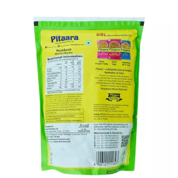 Product Code: 270 Catagory: Namkeen Weight / Quantity: 900 Grams Trade Mark / Brand: Pitaara Material: Pitaara Khatta Meetha Namkeen Package Size: xx MM Country of Origin: India