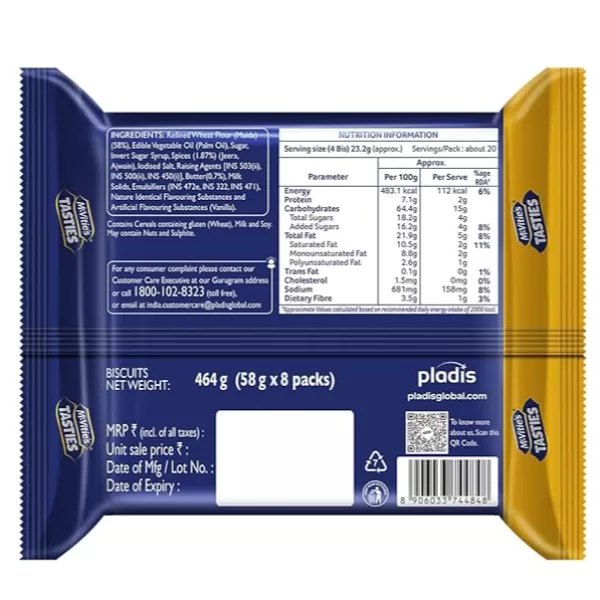 Product Code: 271 Catagory: Biscuit Weight / Quantity: 464 Grams Trade Mark / Brand: McVitie’s Material: Mcvities Butter Jeera Biscuits Package Size: xx MM Country of Origin: India