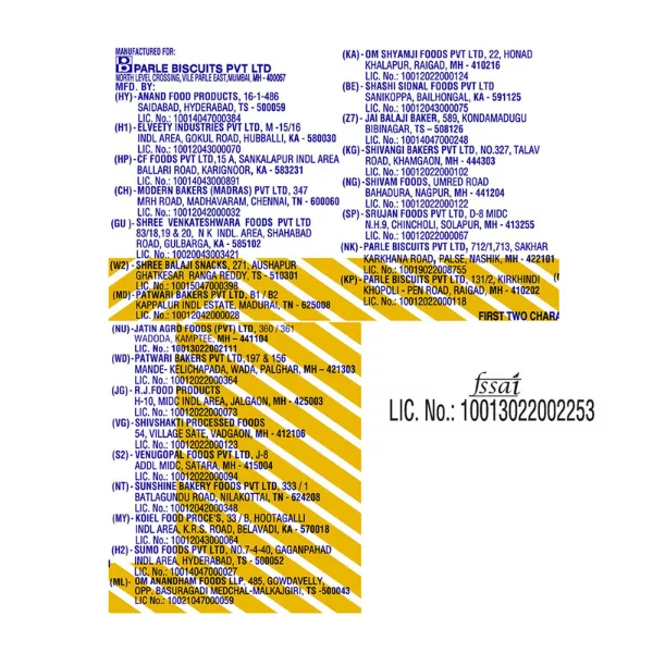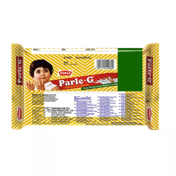 Product Code: 769 Catagory: Biscuit Weight / Quantity: 250 Grams Trade Mark / Brand: Parle Material: Parle-G Biscuits Package Size: xx MM Country of Origin: India