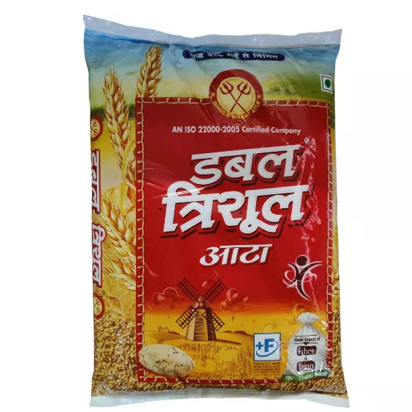 Product Code: 424 Catagory: Atta Weight / Quantity: 5000 Grams Trade Mark / Brand: Double Trishul Material: Atta Package Size: xx MM Country of Origin: India