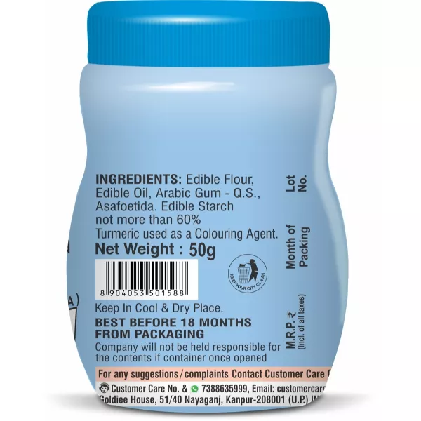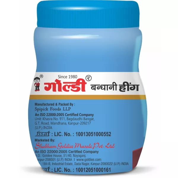 Product Code: 384 Catagory: Whole Spices Weight / Quantity: 50 Grams Trade Mark / Brand: Goldiee Material: Goldiee Super Gold Hing Package Size: xx MM Country of Origin: India
