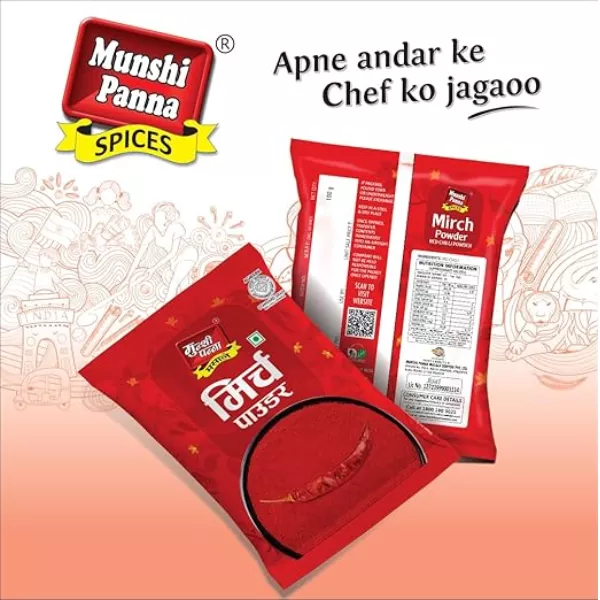 Product Code: 847 Catagory: Powdered Spices Weight / Quantity: 500 Grams Trade Mark / Brand: Munshi Panna Material: Mirch Powder (RED CHILLI POWDER) Package Size: xx MM Country of Origin: India