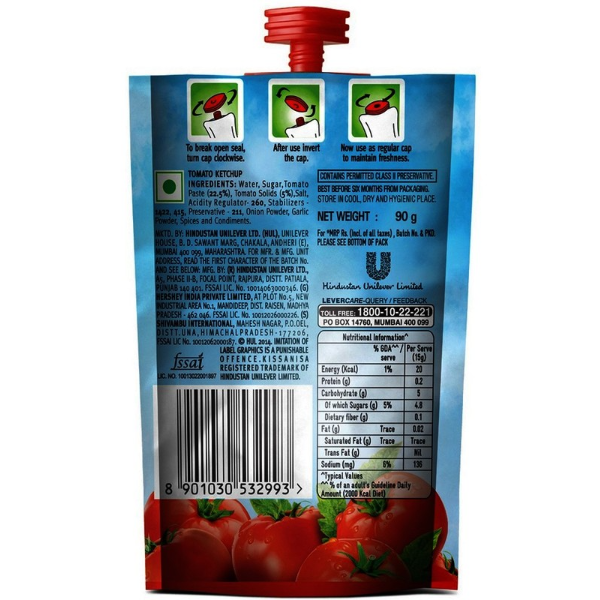 Product Code: 1007 Catagory: Tomato & Chilli Ketchup Weight / Quantity: 85 Grams Trade Mark / Brand: Kissan Material: Kissan Tomato Ketchup Package Size: xx MM Country of Origin: India