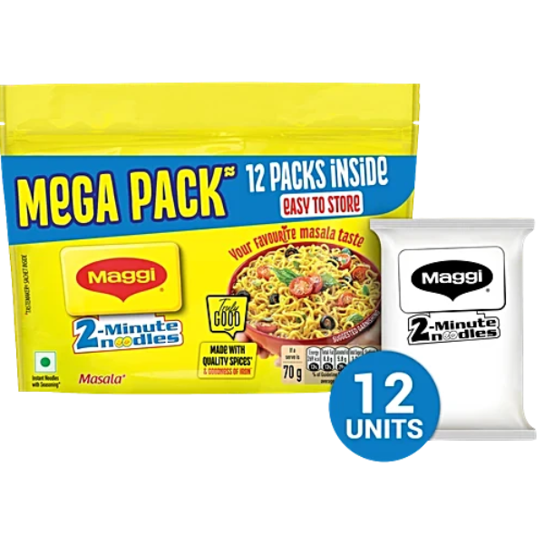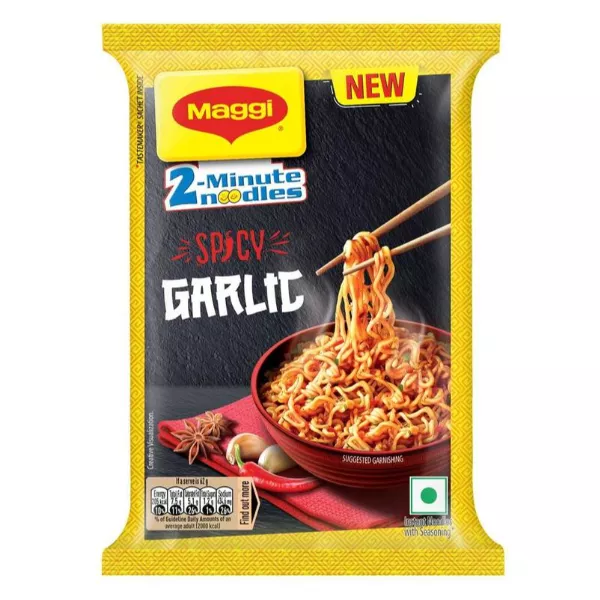 Product Code: 752 Catagory: Noodles Weight / Quantity: 62 Grams Trade Mark / Brand: Maggi Material: Maggi 2Min Spicy Garlic Package Size: xx MM Country of Origin: India