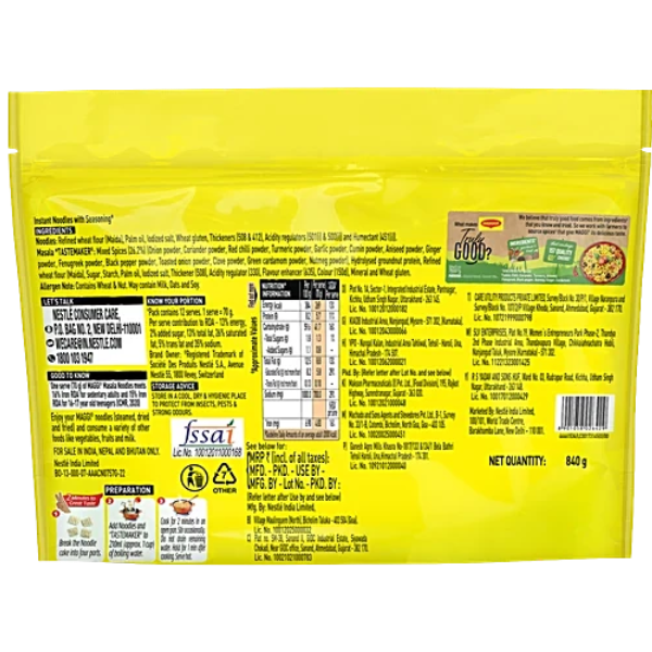 Product Code: 980 Catagory: Noodles Weight / Quantity: 840 Grams Trade Mark / Brand: Maggi Material: Maggi Instant Masala Noodles Package Size: xx MM Country of Origin: India