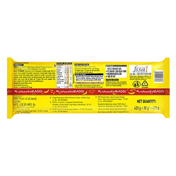 Product Code: 1012 Catagory: Noodles Weight / Quantity: 420 Grams Trade Mark / Brand: Maggi Material: Maggi 2-Minute Instant Masala Noodles Package Size: xx MM Country of Origin: India