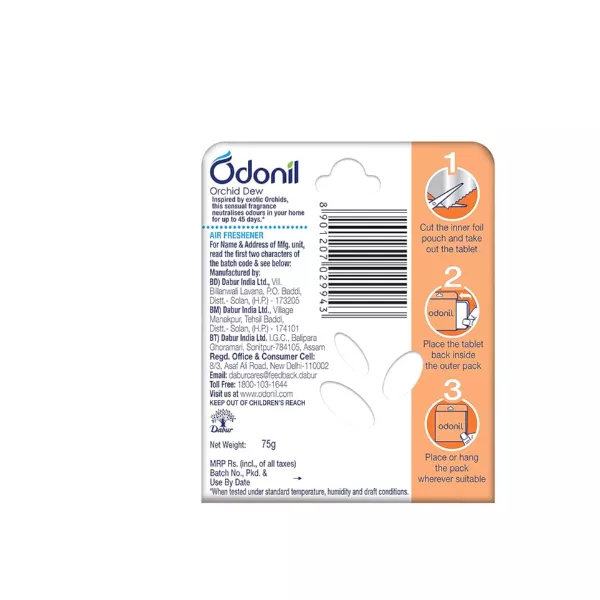 Product Code: 252 Catagory: Fresheners Weight / Quantity: 50 Grams Trade Mark / Brand: Odonil Material: Air Freshener Package Size: xx MM Country of Origin: India