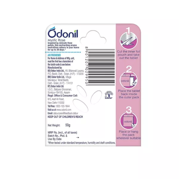 Product Code: 260 Catagory: Fresheners Weight / Quantity: 50 Grams Trade Mark / Brand: Odonil Material: Air Freshener Package Size: xx MM Country of Origin: India