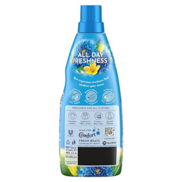 Product Code: 1001 Catagory: Fresheners Weight / Quantity: 860 ML Trade Mark / Brand: Comfort Material: After Wash Liquid Fabric Softener Package Size: xx MM Country of Origin: India
