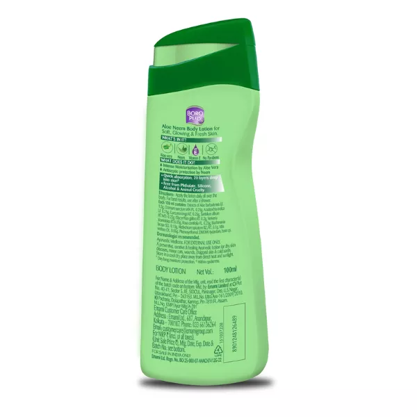 Product Code: 511 Catagory: Face & Body Moisturizers Weight / Quantity: 100 ML Trade Mark / Brand: Boroplus Material: Boroplus Aloe Neem Lotion Package Size: xx MM Country of Origin: India