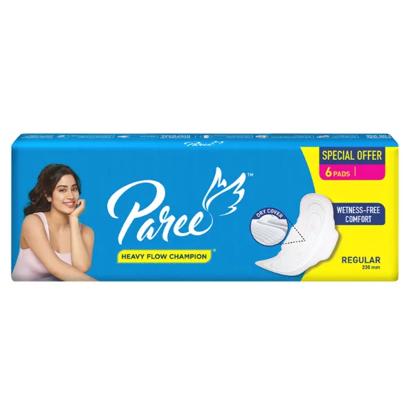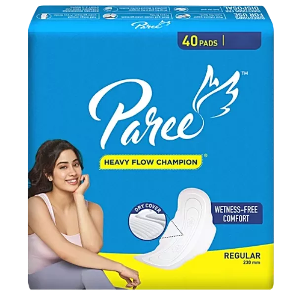 Product Code: 717 Catagory: Feminine Care Weight / Quantity: 40 Pcs Trade Mark / Brand: Paree Material: Paree Dry Feel Regular Sanitary Pads For Women, 40 pcs Package Size: xx MM Country of Origin: India