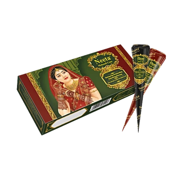 Product Code: 932 Catagory: Feminine Care Weight / Quantity: 00 Grams Trade Mark / Brand: Neeta Material: Neeta Mehendi Cone Package Size: xx MM Country of Origin: India
