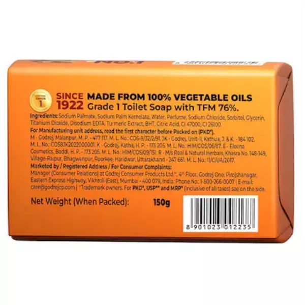 Product Code: 500 Catagory: Bathing Soaps Weight / Quantity: 600 Grams Trade Mark / Brand: Godrej Material: Godrej No.1 Sandal and Turmeric Bath Soap 150 g (Pack of 4) Package Size: xx MM Country of Origin: India