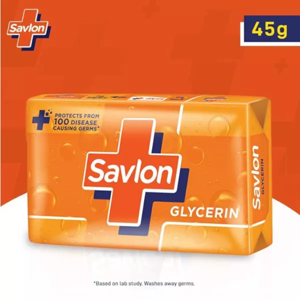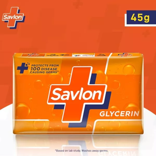 Product Code: 581 Catagory: Bathing Soaps Weight / Quantity: 45 Grams Trade Mark / Brand: Savlon Material: Savlon Glycerin Germ Protection Bathing Soap Bar Package Size: xx MM Country of Origin: India