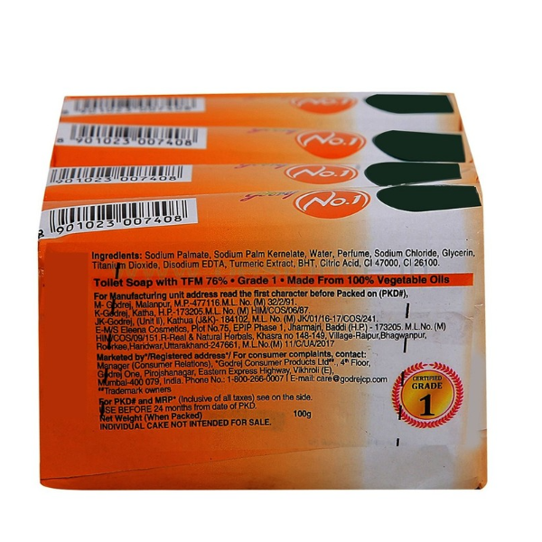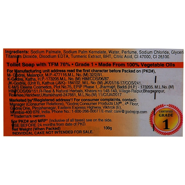 Product Code: 894 Catagory: Bathing Soaps Weight / Quantity: 400 Grams Trade Mark / Brand: Godrej Material: Godrej No.1 Sandal & Turmeric Soap Package Size: xx MM Country of Origin: India
