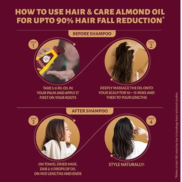Product Code: 568 Catagory: Hair Oil Weight / Quantity: 200 ML Trade Mark / Brand: Hair & Care Material: Hair & Care with Almond,Non-Sticky Hair Oil Package Size: xx MM Country of Origin: India