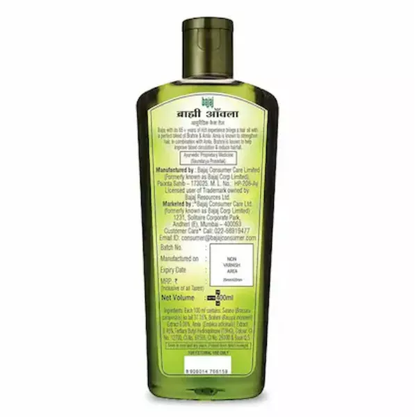Product Code: 705 Catagory: Hair Oil Weight / Quantity: 400 ML Trade Mark / Brand: Bajaj Material: Bajaj Brahmi Amla Hair Oil Package Size: xx MM Country of Origin: India