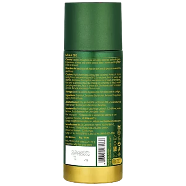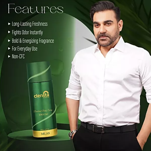 Product Code: 816 Catagory: Deodorant & Talc Weight / Quantity: 150 ML Trade Mark / Brand: Clensta Material: Clensta Milan Men Deodorant Body Spray Package Size: xx MM Country of Origin: India
