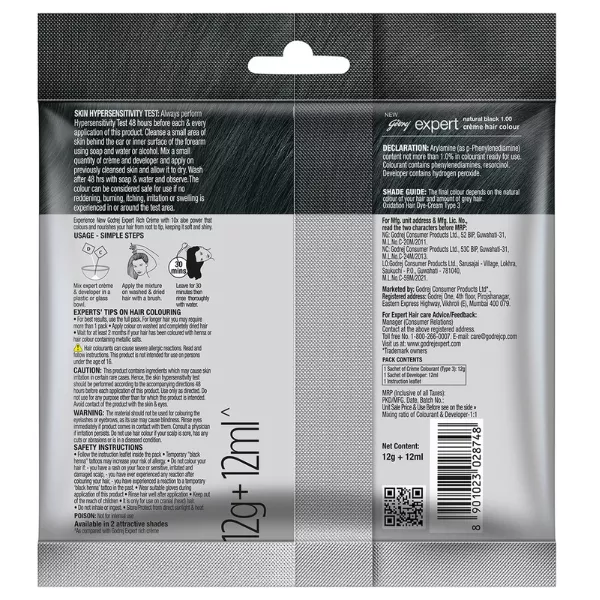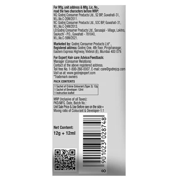 Product Code: 476 Catagory: Hair Care Weight / Quantity: 12 Grams Trade Mark / Brand: Godrej Material: Godrej Expert Creme Natural Black Hair Colour Package Size: xx MM Country of Origin: India