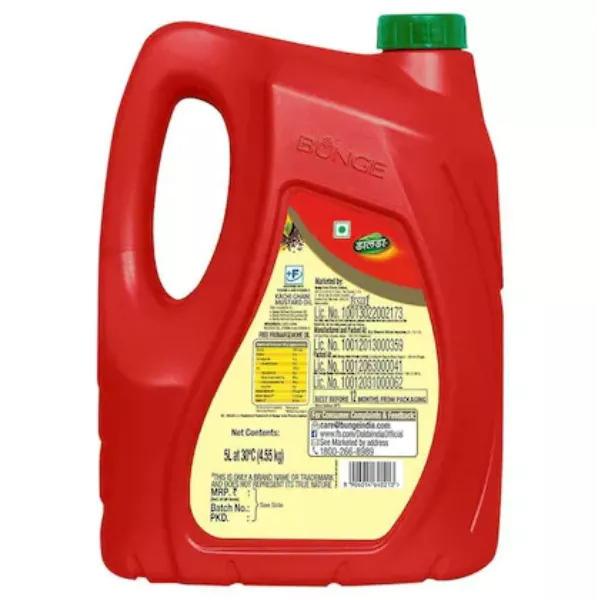 Product Code: 683 Catagory: Mustard Oil Weight / Quantity: 5000 ML Trade Mark / Brand: Dalda Material: Dalda Kachi Ghani Mustard Oil Package Size: xx MM Country of Origin: India
