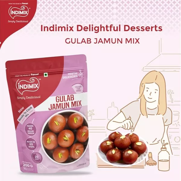 Product Code: 555 Catagory: Ready To Cook Mix Weight / Quantity: 200 Grams Trade Mark / Brand: Indimix Material: Gulab Jamun Package Size: xx MM Country of Origin: India