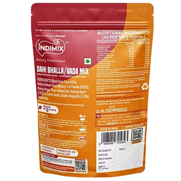 The Indimix Dahi Bhalla Mix is a convenient and effortless way to make yourself some delicious Dahi Bhalla in no time. Dahi Bhalla is everyone's favourite snack, but it takes a lot of time to prep, having multiple tedious steps. With the Indimix Dahi Bhalla Mix, you don't have to worry about any of these problems! An easy to cook mix, you have perfect Dahi Bhallas in just three effortless steps. Makes for the perfect snack to be enjoyed with a hot cup of masala chai and best enjoyed with your friends and family. Explore the wide range of Indimix products only on Big Basket.