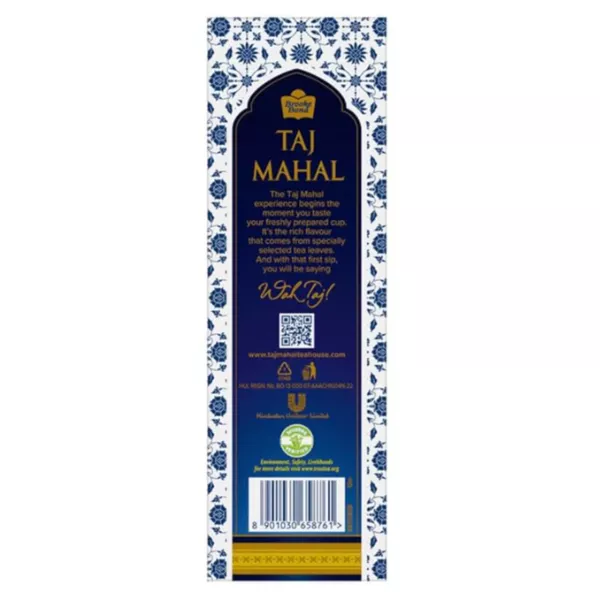 Product Code: 506 Catagory: Tea Weight / Quantity: 500 Grams Trade Mark / Brand: Taj Mahal Material: Taj Mahal Tea With Long Leaves, 500 Gram, Black Tea Package Size: xx MM Country of Origin: India