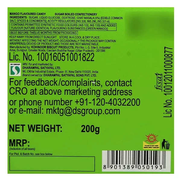 Product Code: 852 Catagory: Snacks & Sweet Tooth Weight / Quantity: 200 Grams Trade Mark / Brand: Passpass Material: Passpass Kachcha Aam Pulse Candy Package Size: xx MM Country of Origin: India