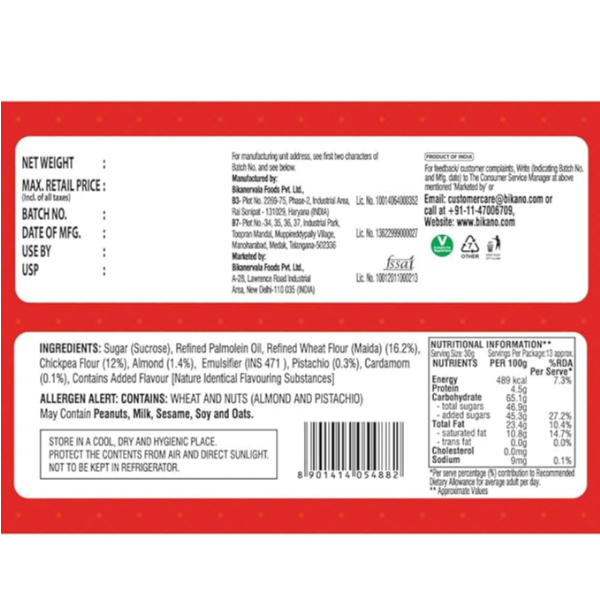 Product Code: 918 Catagory: Snacks & Sweet Tooth Weight / Quantity: 400 Grams Trade Mark / Brand: Bicano Material: Bikano Soan Papdi Package Size: xx MM Country of Origin: India