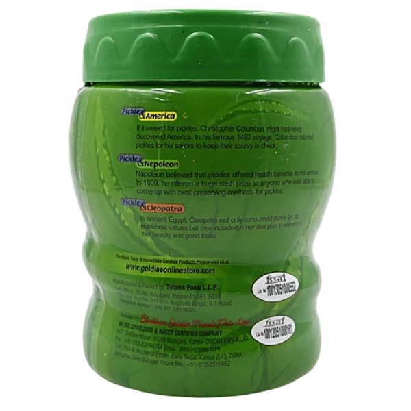 Product Code: 931 Catagory: Pickel Weight / Quantity: 1000 Grams Trade Mark / Brand: Goldiee Material: Goldiee Pickle - Mango Package Size: xx MM Country of Origin: India