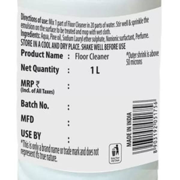 Product Code: 399 Catagory: Floor & Surface Cleaners Weight / Quantity: 1000 ML Trade Mark / Brand: Flipkart Great Buy Material: Flipkart Great Buy Pine Floor cleaner Package Size: xx MM Country of Origin: India