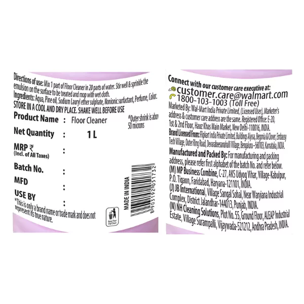 Product Code: 402 Catagory: Floor & Surface Cleaners Weight / Quantity: 2000 ML Trade Mark / Brand: Flipkart Great Buy Material: Flipkart Greatbuy Rose Floor Cleaner 2 N (1 L Each) Package Size: xx MM Country of Origin: India