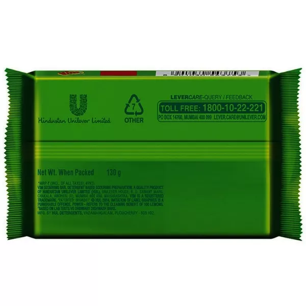 Product Code: 481 Catagory: Dishwashing Gel & Bar Weight / Quantity: 125 Grams Trade Mark / Brand: Vim Material: Vim Dishwash Bar Package Size: xx MM Country of Origin: India