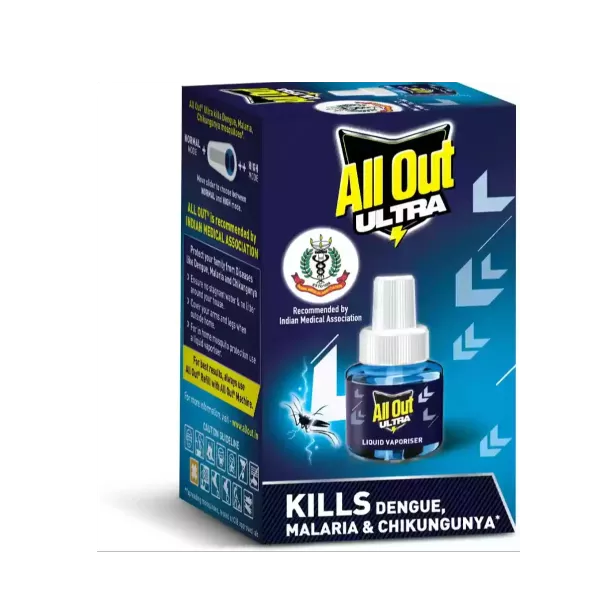 Product Code: 255 Catagory: Repellents Weight / Quantity: 45 ML Trade Mark / Brand: All Out Ultra Material: All Out Ultra Refill Package Size: xx MM Country of Origin: India